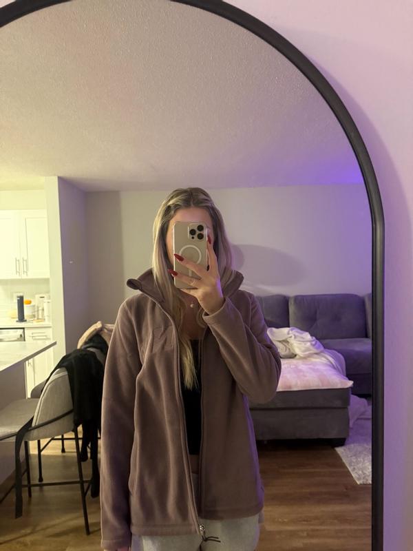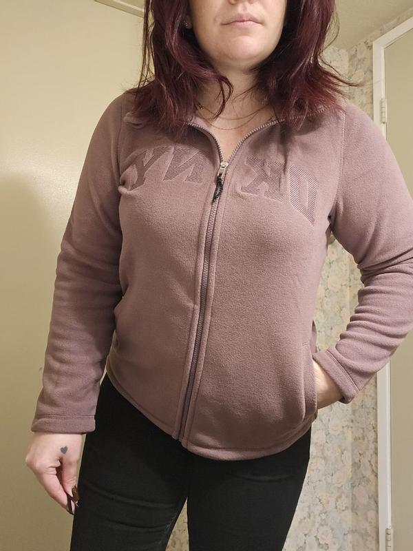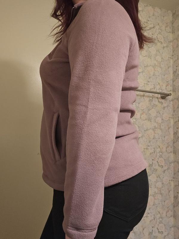 So soft and very thick...the perfect weight to keep you warm but not féel bulky I like that the logo is faint and not in your face.