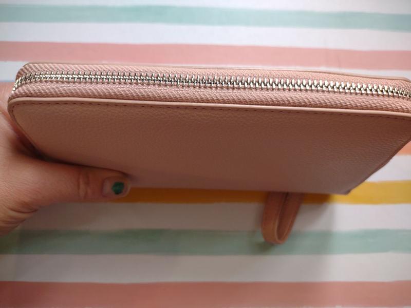 Such a lovely wallet, it’s the perfect shade of pink and very well made. The leather feels lovely and soft and the stitching is clean and secure. The lining is also really nice, it is a good size wallet with plenty of card slots for ample organization. It is feels like it will wear really well too. I especially like the little wristlet for ease of carrying and a little added security.