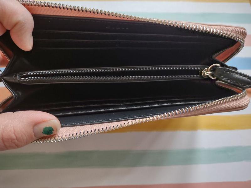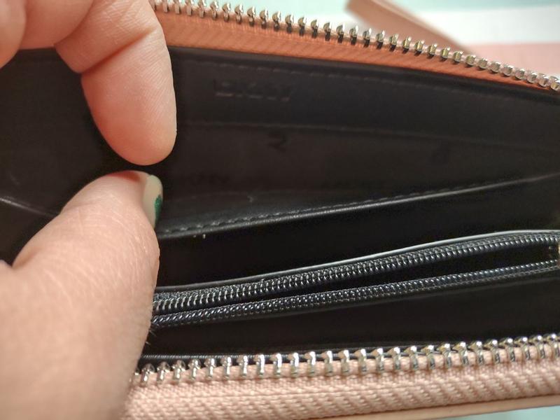 The color of this wallet is very nice and would go well on a fancy evening out or to a Prom. For the price point, I was disappointed to see an imperfection on the D of the wallet. The logo is also just ironed/pressed on. I feel like it would be a bit higher quality for the cost. I do love the amount of space inside of it. It has multiple pockets, and slots for 8 cards on their own. If the middle zipper inside is closed shut, it makes the wallet hard to open and then the zipper gets stuck and can't open the wallet easily. These are the reasons for my lower star rating. I was incentivized by Influenster and DKNY in exchange for my honest review.