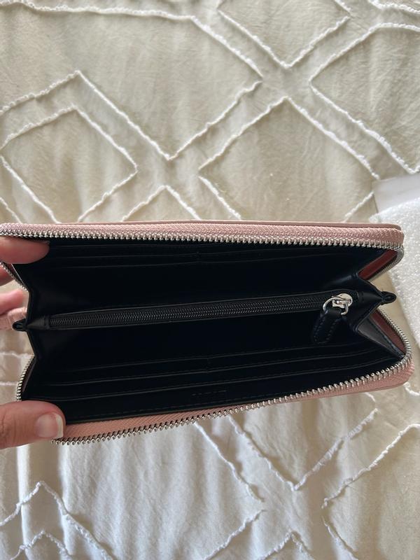 I love this wallet. The color is soft and pretty. It's perfect for day to night. I can carry it by itself for a simple clean look or put it inside my tote. It is very practical and easy to use. I'm very happy with it.