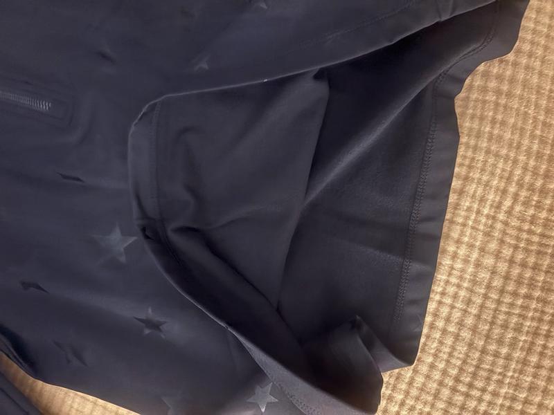 This pullover is very cute with the star pattern design. It has a zipper near the front neck area, which makes it great for regulating temperature. I wore it out in cold weather without any jacket over and it kept me warm. It also did not accumulate odor easily. The inside is very soft and the fabric is stretchy, making it great for sports. It does not have any pockets, which I would have liked. The retail price is also a bit expensive in my opinion.