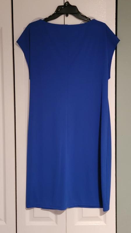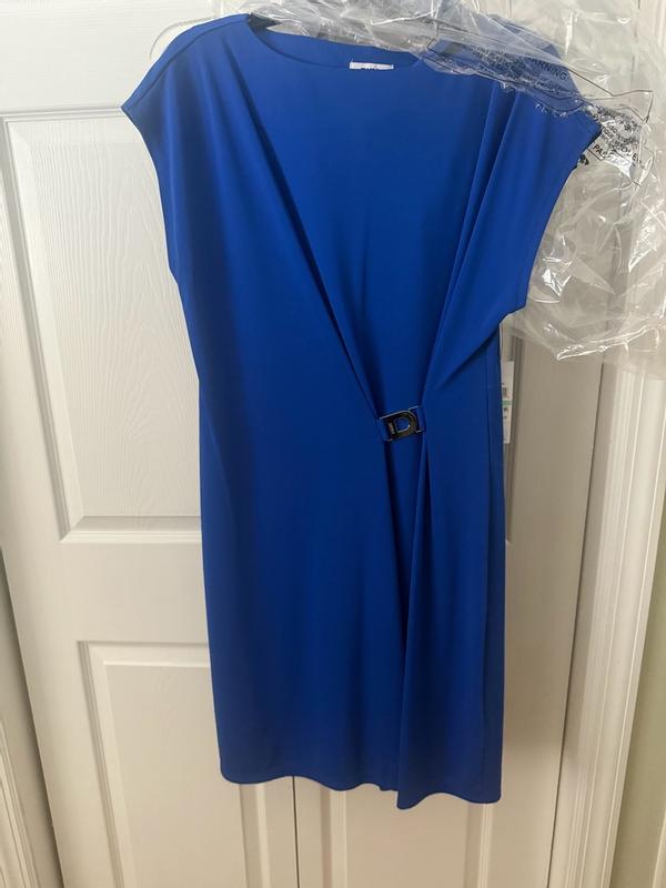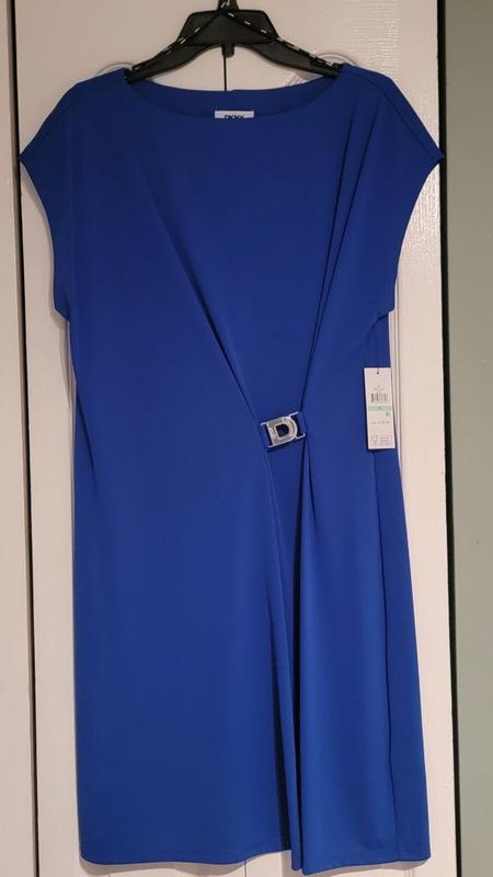I recently tried on this stunning cobalt blue DKNY dress, and I must say – I felt incredibly comfortable and confident wearing it. Im 5’1” and fit in a size S. The fabric is soft, smooth, and flows nicely without clinging too much. The design is simple yet elegant, with a flattering waist detail that adds a subtle touch of style. I especially love the bold color – it’s vibrant, eye-catching, and really makes you stand out in the best way. Whether for a work event, dinner, or casual outing, this dress feels versatile and easy to style. It’s definitely a piece that brings both comfort and elegance in one look. Highly recommended!