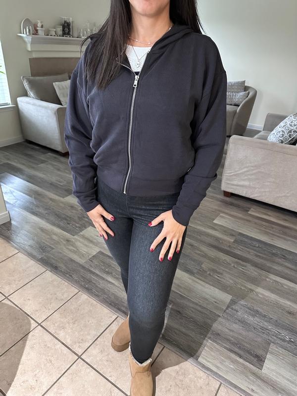 I just got my order yesterday. The middle part of the left front side is scratched by the tag. (I guess. Because I ordered a xs last week and returned it and ordered a small size. Both of them got scratched at almost the same spot. ) The fabric is a high quality one and the color is nice. I really like the style. But I am very frustrated by the damage on the clothing. I hope they handle the clothings more carefully or if it is a damaged one, please don't ship it to your customer.