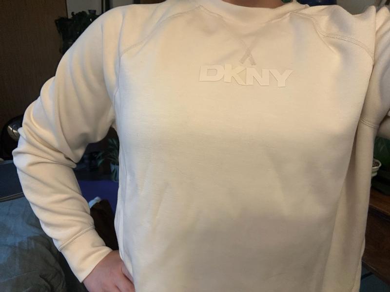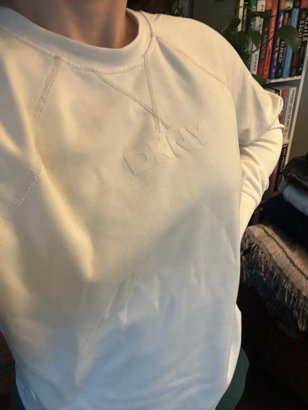 🤍The DKNY Crew Neck Scuba Pullover Top with Logo is an absolute wardrobe staple! The first thing I noticed was the material — it’s buttery soft and feels amazing against the skin, making it perfect for all-day wear. The scuba fabric has just the right amount of stretch, giving it a flattering fit while still being super comfortable. I also love the bold DKNY logo detail, it gives the pullover a sleek, modern vibe that can be dressed up or down. Whether I’m lounging at home, running errands, or styling it with jeans for a casual night out, this top never disappoints. Definitely one of my new favorite pieces!❤️🔥 🖤