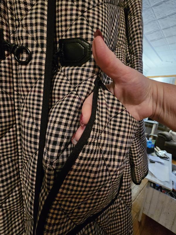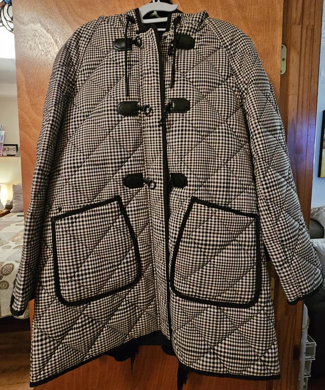 I love the beautiful plaid and toggles on this coat. When I received it, I was surprised that it had a cotton-y feel to it rather than a slippery nylon outer fabric. It runs a little large. I decided to return it as it was very stiff and slid from shoulder to shoulder. Also, the sleeves do not have a sweater cuff inside, so the wind would rush right up one's arms. Sadly, I returned it. No for me, but others may like it more.