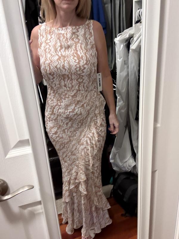 The dress was used, unbuttoned, it smelled, and looked used. I was appalled that Macy’s would put this in a bag and sell it. The dress looked old. I re-ordered the dress. If I receive the same dress I will no longer order items from Macys.