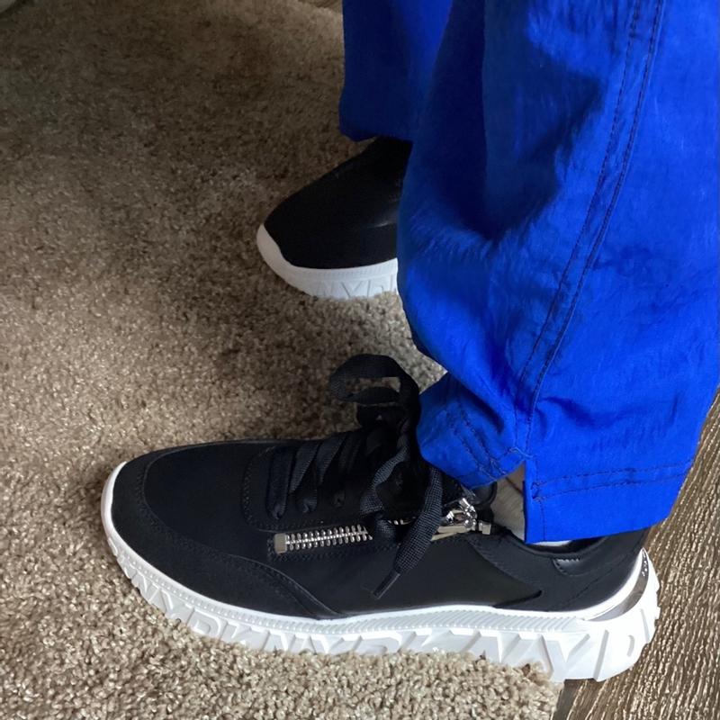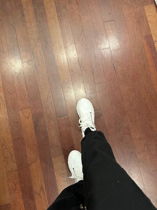 The shoes are super comfortable and very unique looking! They’re the perfect white color that matches with any outfit. My only issue is that the dkny along the shoe gets grime in it and isn’t easy to clean. But cute overall!