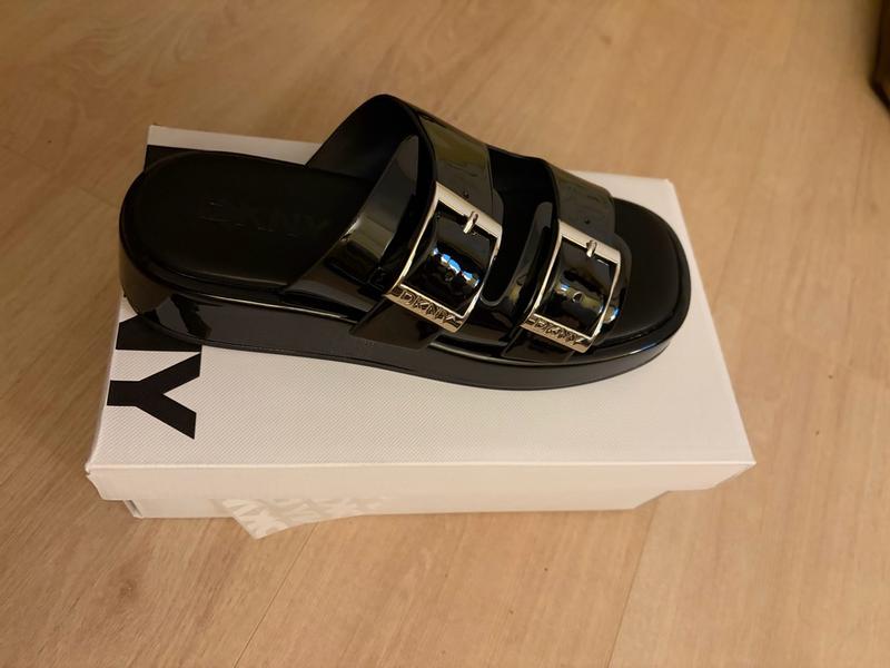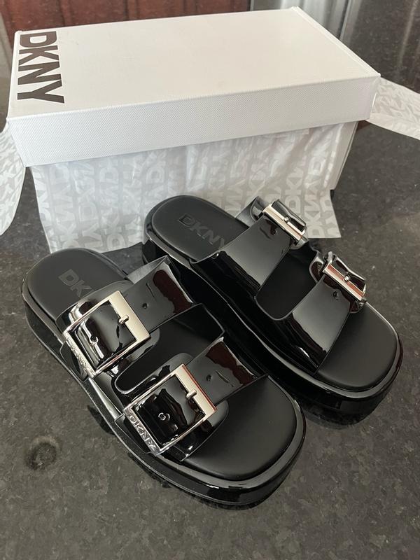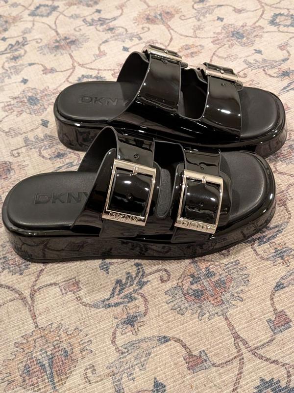 These women’s leocadia platform sandals by dkny are so cute!! Love the platform design, the patent leather look, and the oversized buckles. They are also super comfy and the soles feel nice and soft. Definitely recommend!