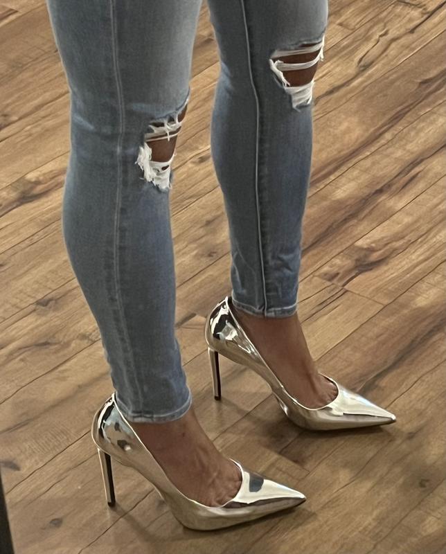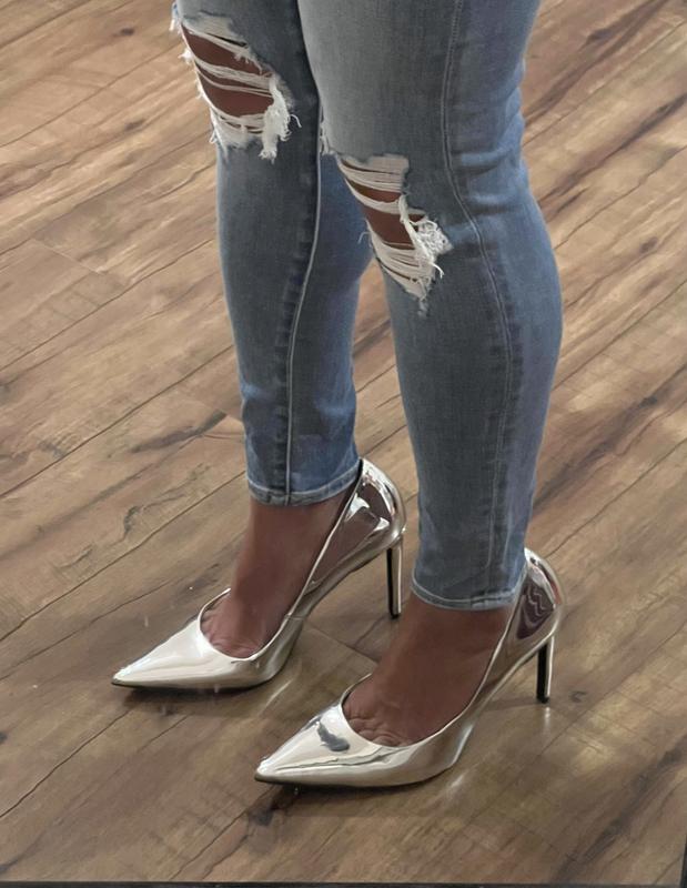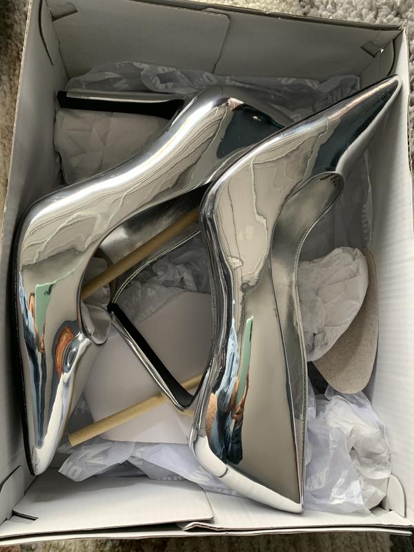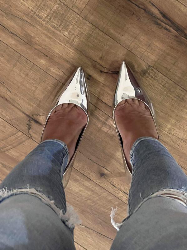 Ok firstly, I sized up a half size and put some comfy sizers in the heel and these are SO comfy!! Not to mention the silver chrome how on trend and chic these look! So shiny and look so expensive! BUY THEM!!