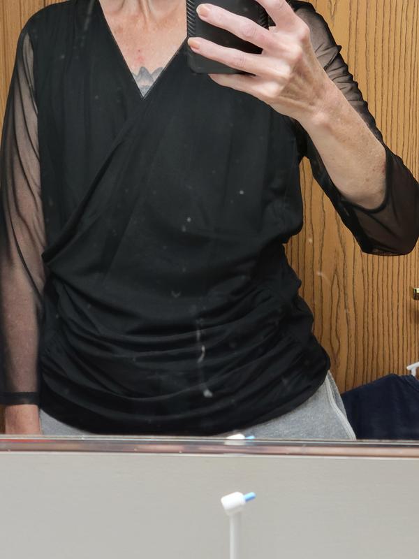 Women's Mesh Long-Sleeve Faux-Wrap Top