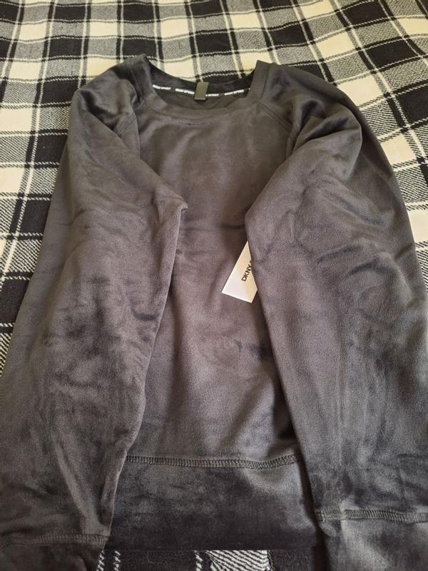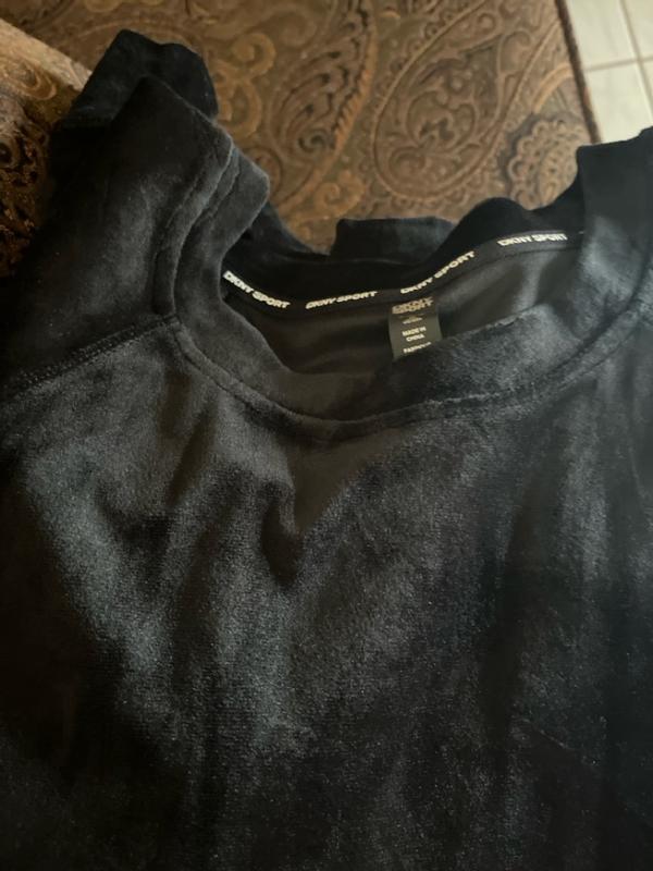 A velour finish lends style and luxury to an athleisure classic, this crewneck sweatshirt by DKNY is designed with a dropped sleeve silhouette.