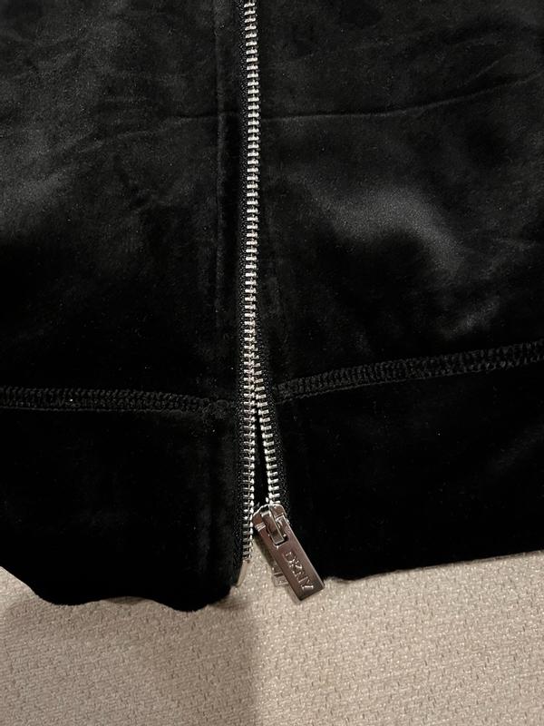 Purchased two, black and blue - soft velour, good value and quality. I usually purchase medium, sometimes small or large, depending on designer. I purchased small and liked the fit, so if you don't want it boxy or in between sizes, I would size down.