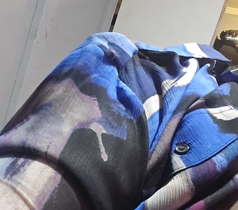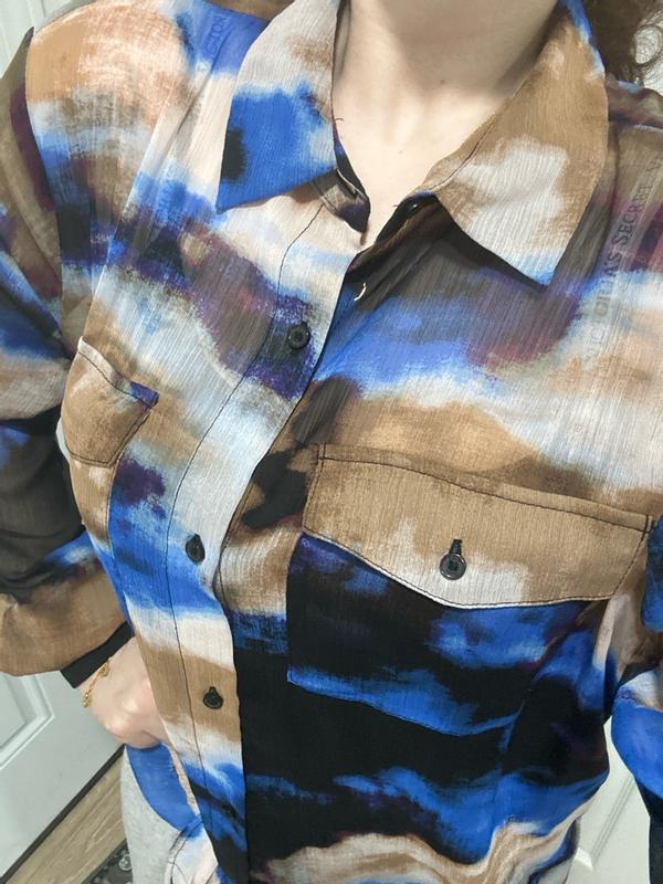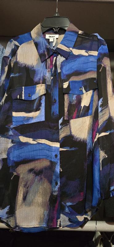 That shirt is absolutely beautiful! It has such a classic yet chic lookI picked up the DKNY Long Sleeve Button Down Printed Crinkle Chiffon Shirt in the Compact Cheetah print, and I am so happy! The material is a crinkled chiffon, which gives it a lovely texture and drape. It feels light and comfortable, and the subtle crinkle means it's super forgiving for packing and traveling—a huge plus! I especially love the contrast black cuffs; they really elevate the design and give it a polished finish.