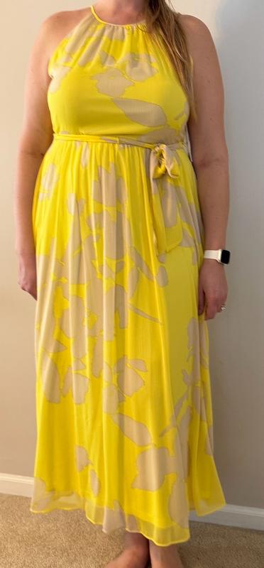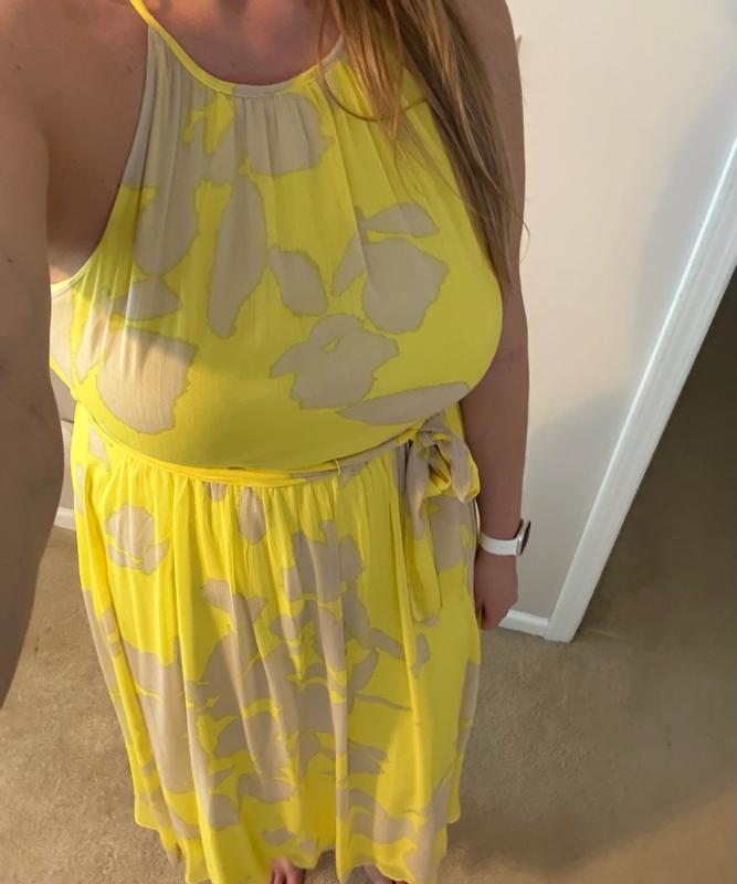 This dress is so cute and beautiful! It's flowy and easy to wear, I like that it has a belt to cinch in the waist. The sizing is true to size as well. The only thing I would be careful about is being gentle around the neckline because of the tiny halter strap, I worry about the durability but other than that it's great!