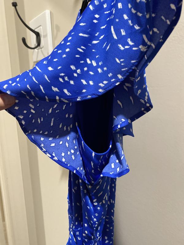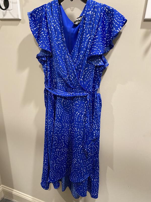 Women's Printed Flutter-Sleeve Faux-Wrap Dress