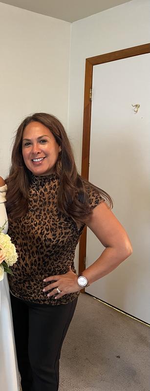 Web ID: 24676822Make a polished statement in this DKNY top with a sleek mock neck silhouette. Its bold print adds a vibrant touch to your wardrobe for various occasions.