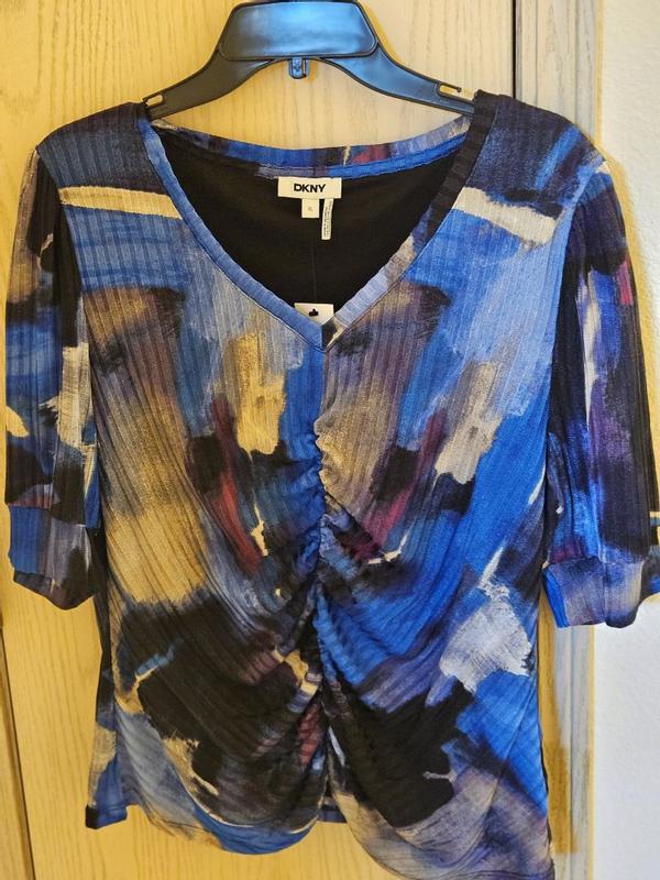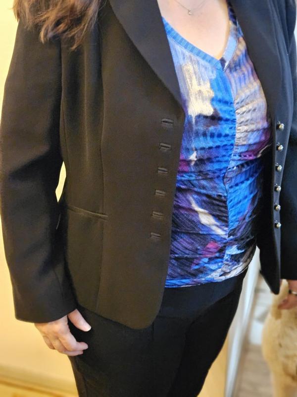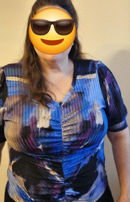 This colorful blouse is a great addition to my work wardrobe. The soft fabric has a bit of stretch that ensures a flattering and comfortable fit. The XL top runs true to size although I wish it were slightly longer. (I am 5'6" and normally wear a size 16.)