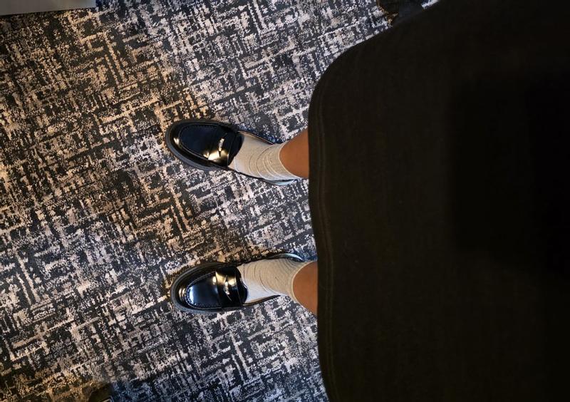 Immediately upon putting these loafers on, I felt the plush and supportive footbed. My foot really sunk in comfortably! However, they are pretty sturdy shoes that required some break in around the toe box and heel area. I wore them for a few afternoons around the house, first with socks and then graduating to wearing without socks. (No blisters!) I wouldn’t wear these for long days on my feet, as I don’t think they’re very breathable. They’ll be great for the office or going out to dinner, though!