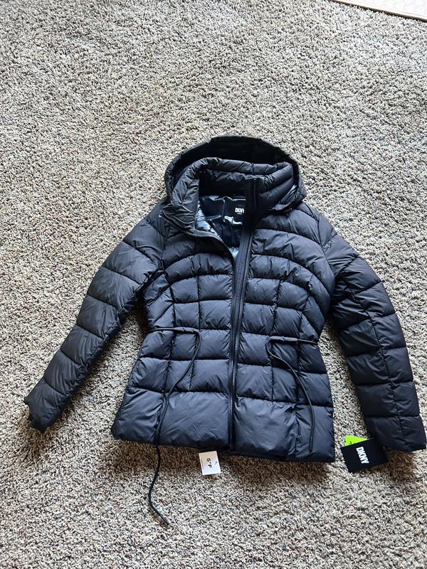 DKNY Womens Rope Belted Hooded Puffer Coat