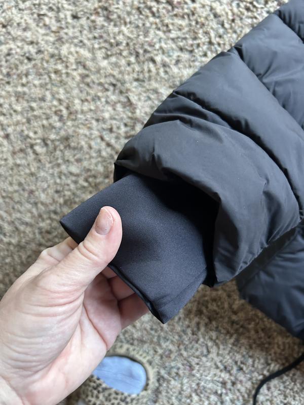 This is a stylish and very warm jacket. I purchased the olive and burnt orange in the size extra large beause I have a large chest. Don't be deceived by the lite weight of the jacket; it is soo warm, and I found that I never needed a sweater underneath. I assume because it's made from recycled bottles it keeps the cold air from penetrating the jacket. Overall, I love both jackets, especially since I purchased them on sale!