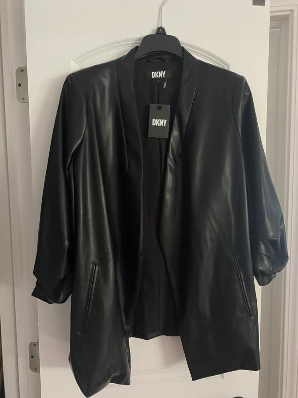 I love the DKNY faux leather jacket! If I didn’t purchase it, I wouldn’t know it was faux leather. The jacket can be worn in multiple ways making it as functional as it is stylish! I plan to sport it with my jeans, leggings, and dress slacks! Very chic and a good look for transitioning into the fall season!