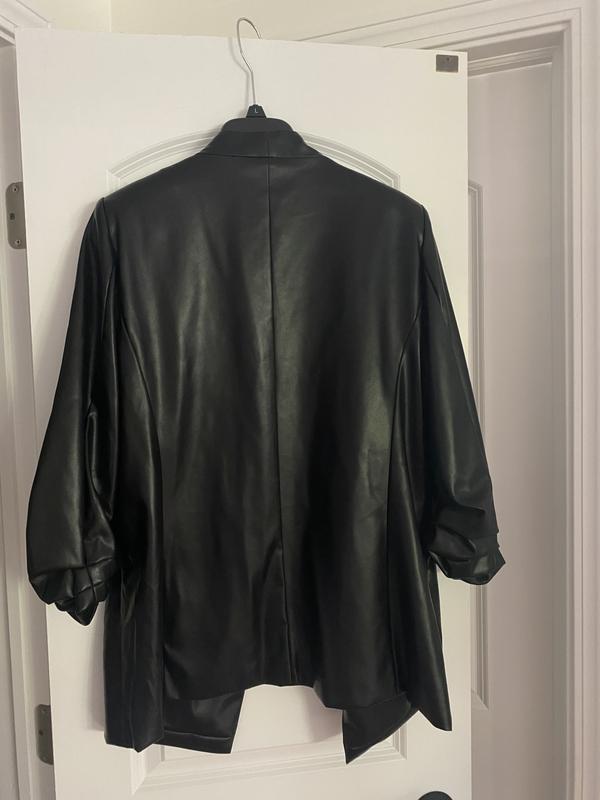 Women's Ruched 3/4 Sleeve Faux Leather Blazer