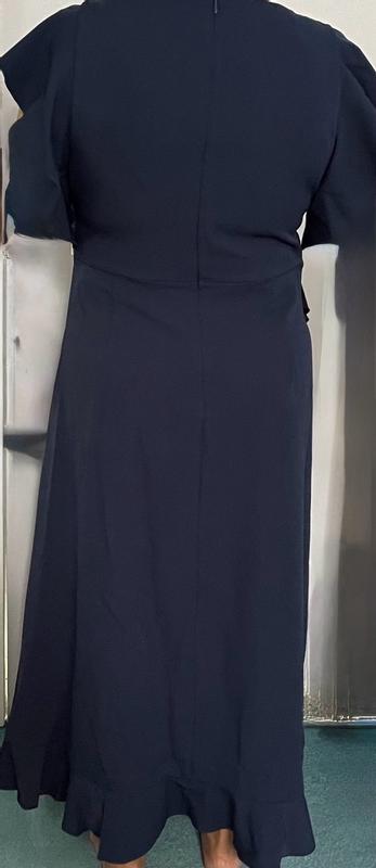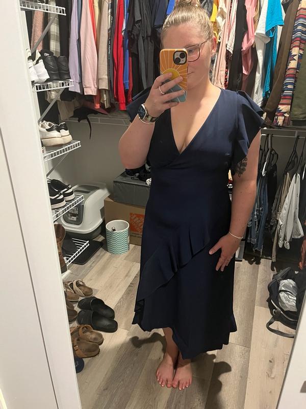 I’m so happy with it! The material feels soft and lightweight, perfect for warm weather but still classy enough for special occasions. The surplice neckline is very flattering without being too low cut, and the ruffle sleeves add a feminine touch that makes the dress look elegant. The length hits right around mid-calf on me (I’m 5’5”), which is just right for both casual and dressy events. The fit is true to size—comfortable around the waist with just enough stretch. I wore it to a wedding and received so many compliments! It pairs well with heels for a dressy look or sandals for something more relaxed. Overall, it’s stylish, comfortable, and versatile. Definitely worth the price, and I would love to get it in more colors!