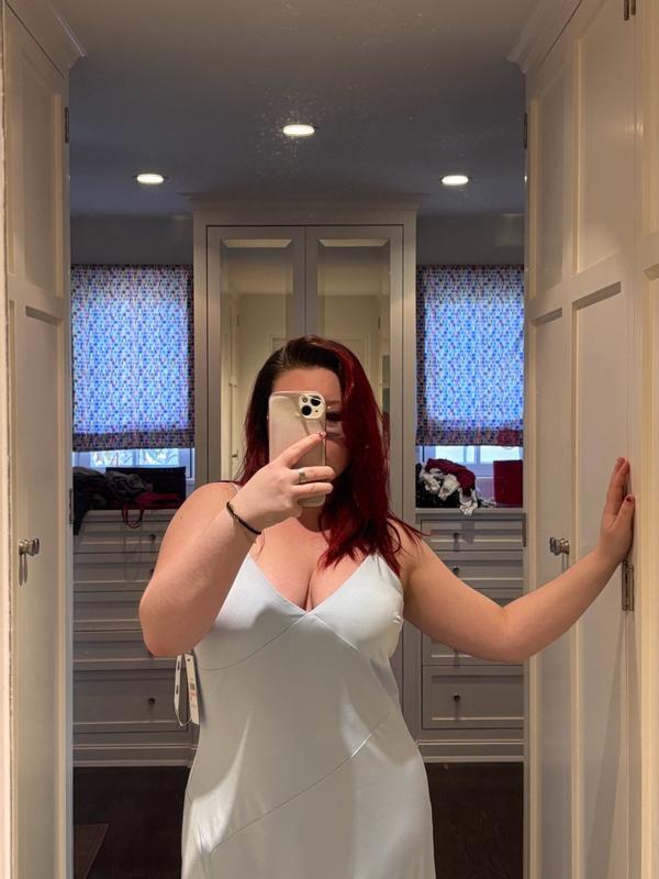 I was really hoping to love this DKNY dress—it feels amazing against the skin, the quality is nice, and the style is kind of cute, comfortable, and the powder blue color is absolutely beautiful. Unfortunately, the fit was a total miss for me. I’m 5’2”, and the asymmetrical hem just looked awkward and unflattering. It seems like this dress was designed with taller women in mind—probably 5’7” and up—because the proportions are all wrong on a shorter frame. If you’re petite, I’d recommend skipping this one, no matter how tempting the fabric and color might be.