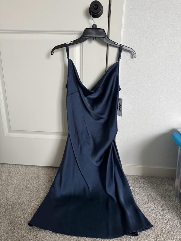 Women's Satin Cowlneck Sleeveless Slip Dress