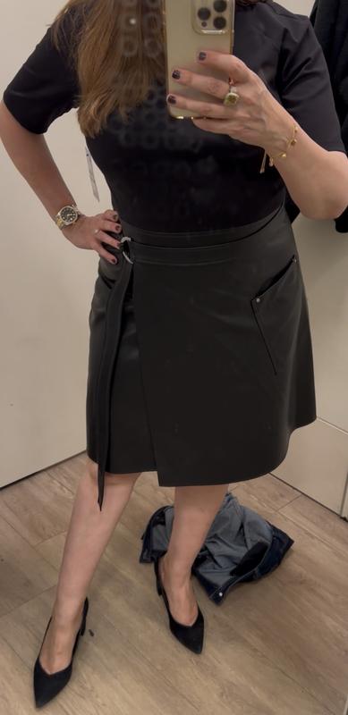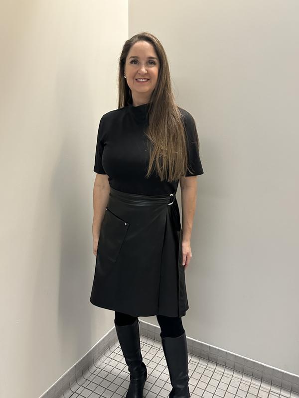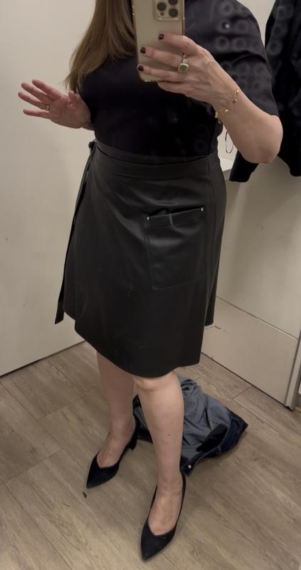 Love this little black dress with the stretchy, mock neck, top and leather wrap, ski skirt detailing with belt. Initially, I had sized up, but found it too big and then went back to get my normal size 1 40, 35, 44 and took a size 14. It’s incredibly flattering on my body. The wrap skirt lays beautifully and drapes away from the fitted top. I’m planning on wearing it for some date nights, a holiday party or two with the right accessories, even some concerts. It looks beautiful with a pair of tall boots, booties, strap, sandals, and heels. Such a cute fun dress with style!
