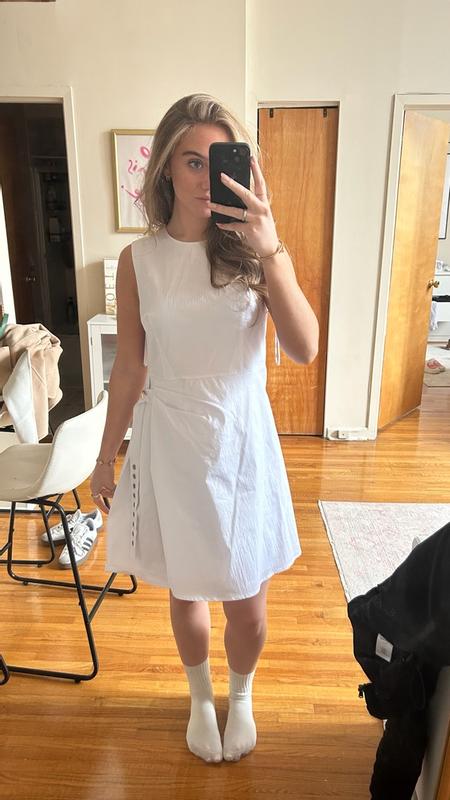 So the dress is super comfy. I got a size 12 and it fits pretty on point. A little big in my waisted area. I’m 5 feet 2 inches and it hits me right at the knee. It’s a very sturdy material BUT I have NO idea how to style it with the weird faux belt thing you can see in the picture. It doesn’t wrap. You can’t make it shorter so it just hangs awkwardly.