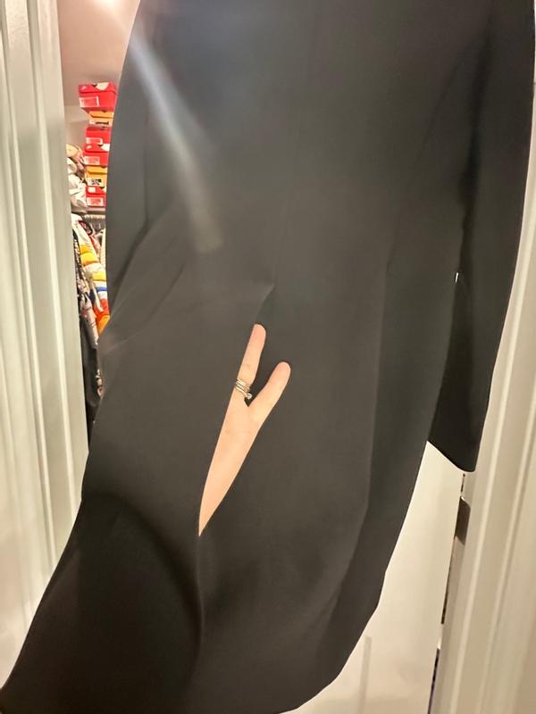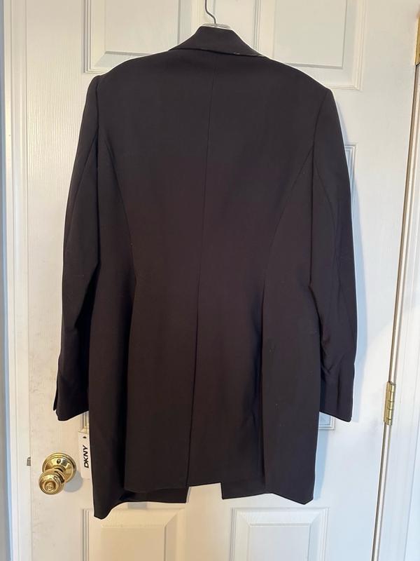 Omg! Perfect fit! Beautiful refined and elegant look. Bought to wear with an ankle length pencil skirt and it’s just perfect. Ty Dkny and Macy’s. I had to return a smaller size and it was easy friendly and she was able to find the right size and shipped it to me promptly. Recieved it and a hangar in plastic protector. Awesome!
