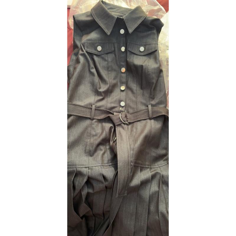 DKNYWomen's Sleeveless Collared Pleated Dress