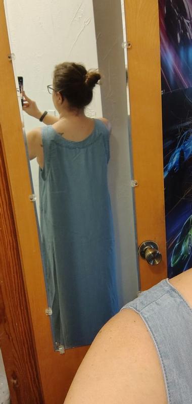 Surprise find! Normally straight cut dresses do not work for my body type, however, this did. IMO, it runs big, i bought a small. It’s light weight but not too light, has nice stitching detail, and side slits, so it’s not too boring. Might transition well for autumn, belt, boots, blazer/swearer.