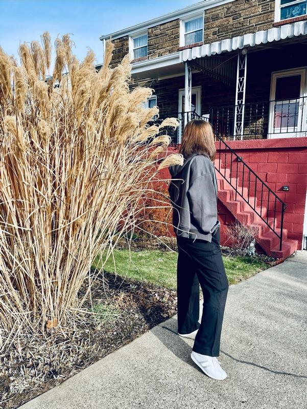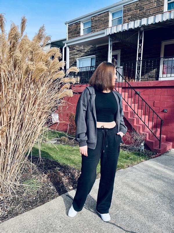 Great basic wide leg sweatpants. I’m about 5”3’ and reaches really close to the floor which I don’t mind but obviously better with shoes on. Unfortunately the drawstring did not last through a couple of laudries (probably cuz there wasn’t an aglet on the ends) and the drawstrings are sewn on which is annoying in a way Comfy, pockets, warm enough, good stretch Would look sleeker without the big logo