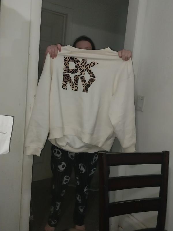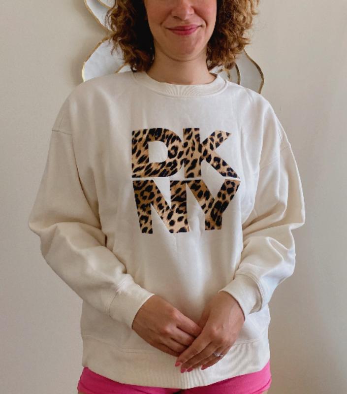 I was really excited to receive this Animal Print DKNY Womens Crewneck - it is wildly soft and cozy and the animal print logo is SO cute. I only took a star off because I find that the fit is a bit oversized but the description didn’t really seem to indicate that.