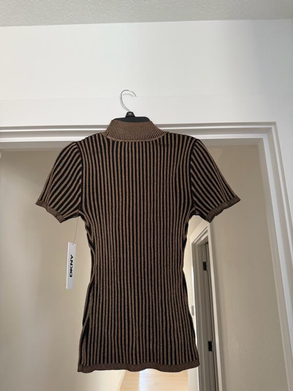 I was blessed to receive DKNY Short Sleeve Rib Sweater for free for my honest review of their product. First impression was WOW ! It is a stylish olive and black color that is very comfortable. The sweater is a high quality fine gauge knit that will be very durable and won’t easily snag or wear. This sweater fits beautifully and the ribbing accentuates my hourglass figure perfectly. Also very versatile in styling, I could wear with jeans or dress it up with leather skirt for a night on the town. Love!