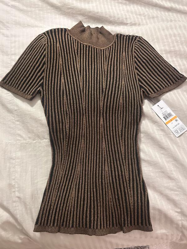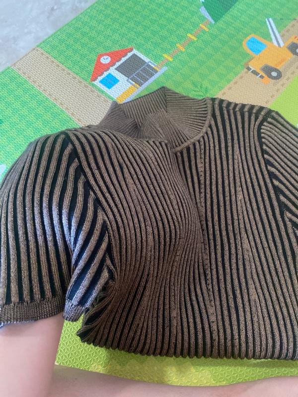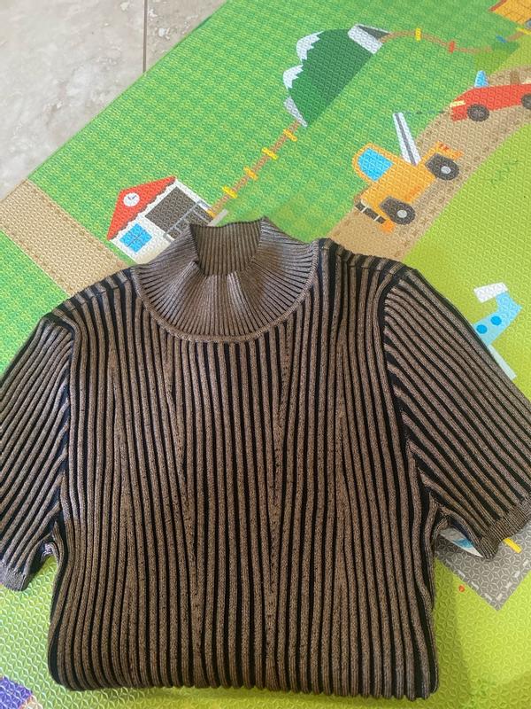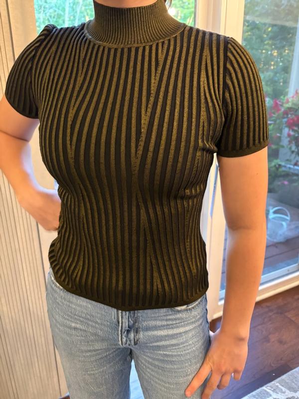 This DKNY ribbed mock turtleneck is really nice overall. The quality feels solid, and I love the flattering mock neck design. It’s a great transitional piece for fall and pairs easily with jeans or a jacket. The only thing I didn’t expect is that it has a bit of a metallic-like thread running through it, which gives it a brighter green sheen rather than a true olive tone. Still, it’s a stylish, comfortable top that feels great for the season!