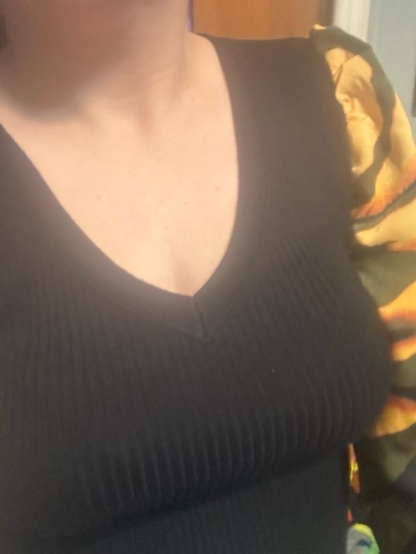 This item was nicer than I thought. The v shape is beautiful and sweater fits well and comfortable in the body. Sleeves adds charm to it. Super nice! I really love it.