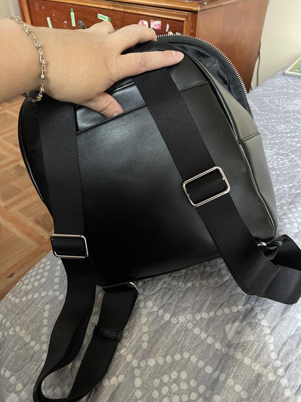This backpack is very pretty, it has a very young style and at the same time very formal. The leather with which it is made looks very good quality. The straps are made of fabric that makes it fit well on your shoulders and the beauty is that the straps They are very long for people who sometimes look for that inside, it has a lot of space and it has two bags, one with a zipper and the other not. The fabric inside looks beautiful and the most beautiful thing is that it has a very different design with those extra bags that they put him out. Its size is neither too small nor too big, it is a perfect size, you will definitely love this backpack and I recommend it