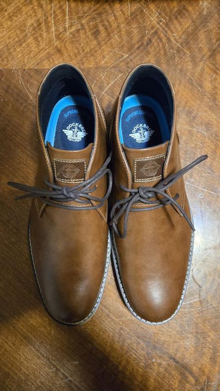 My first pair of Dockers shoes features plush, cushioned soles for all-day comfort. The sleek, polished design of the boots complements a variety of outfits, making them a versatile and stylish addition to my wardrobe. I will wear them every day to go to work. The leather is shiny, making me look and feel good when I walk around the office and receive compliments from coworkers.
