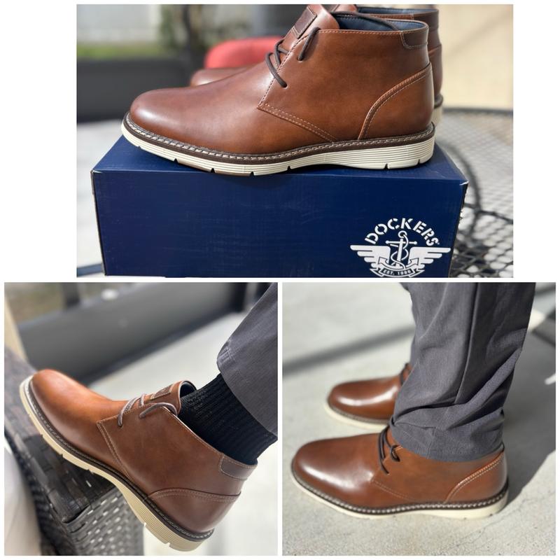 My first pair of Dockers shoes features plush, cushioned soles for all-day comfort. The sleek, polished design of the boots complements a variety of outfits, making them a versatile and stylish addition to my wardrobe. I will wear them every day to go to work. The leather is shiny, making me look and feel good when I walk around the office and receive compliments from coworkers.