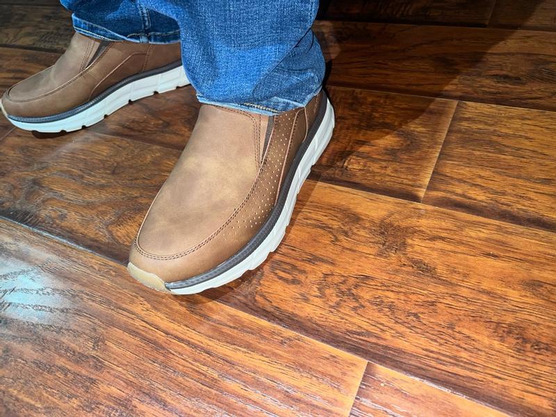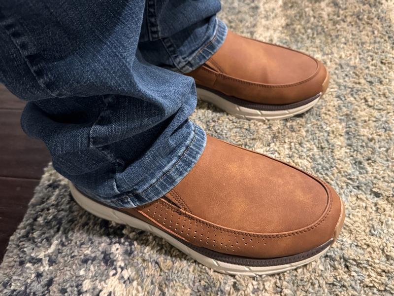 These Dockers GO-TIME slip-ons are a solid pick, featuring a polished brown leather upper with perforated details to keep my feet fresh. The cushioned sole makes every step very comfortable, whether I’m lounging at home, tackling a casual workday, or heading out for a relaxed date night. No laces to fuss with, and they pair great with khakis for a laid-back yet sharp look. Perfect for any occasion!