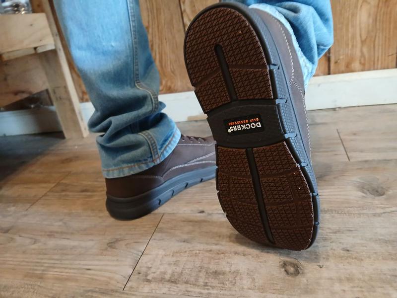 Comfortable shoe but I wear it for doing yard work and part of my yard has a rather steep side hill. The leather is so soft that I cannot stand on the hill because the leather gives way and my foot comes out the side of the shoe. This is dangerous and uncomfortable. I now have to change shoes every time I need to work on the hill.