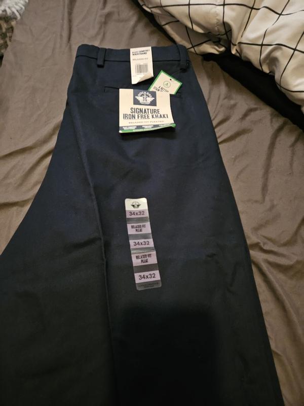 Men's Signature Relaxed Fit Pleated Iron Free Pants with Stain Defender