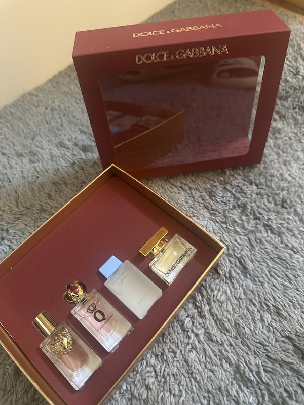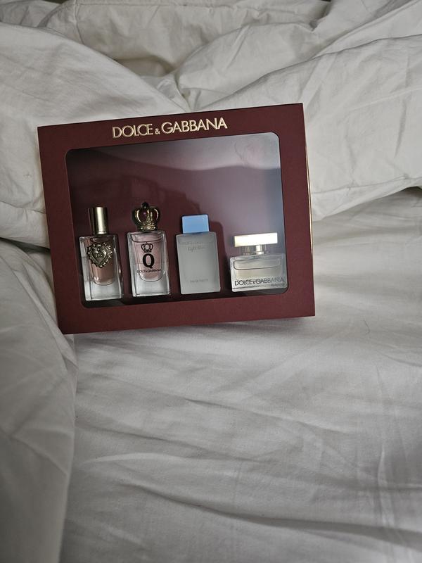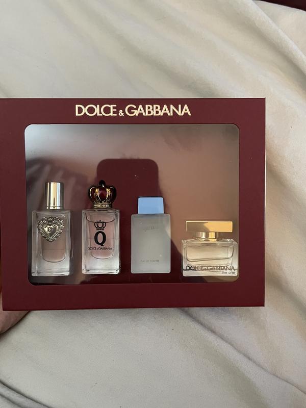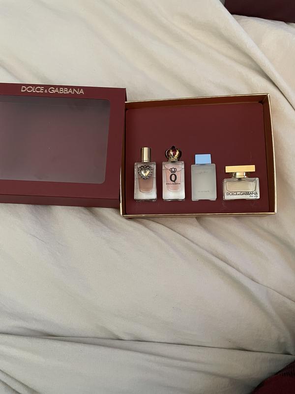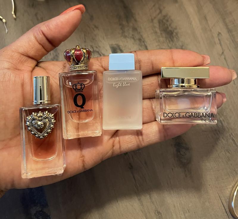 - Devotion Eau de Parfum, 0.16 oz.; Light Blue Eau de Toilette, 0.16 oz.; Q Eau de Parfum, 0.16 oz.; The One Eau de Parfum, 0.16 oz.