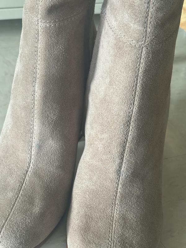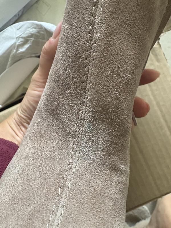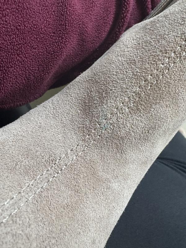 Received these boots today and upon opening I was super excited. However, upon a closer look, I noticed that there was a blue marking on the fronts of the boots where the ankle starts from the foot. The bootes are of suede like material and the blue marks almost look like marker or something that rubbed on it which was of blue color. Disappointed that I paid that much and only to receive products that are not in perfect condition.
