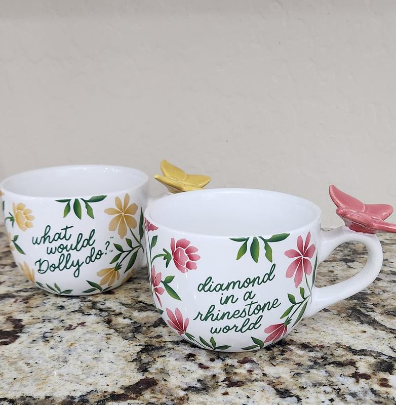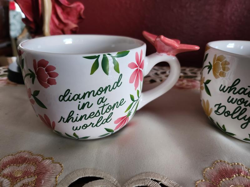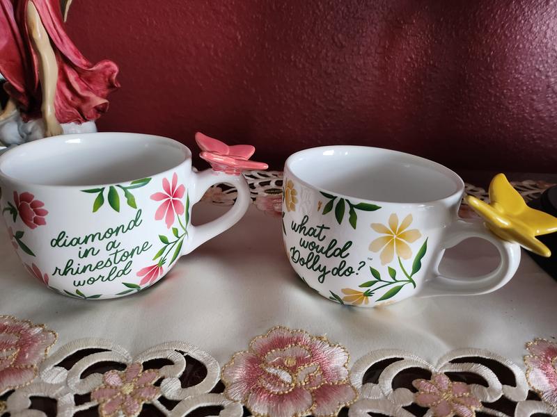 Theses are the perfect cups for tea party with family me and my mom and my sister along with my grandma enjoyed tea in these cups together. These cups are so cute with very simple quotes about Dolly. I love the cute butterflies with coordinating colors. I also found the cutest plates to go along with each color cute which made them perfect for our tea parties.