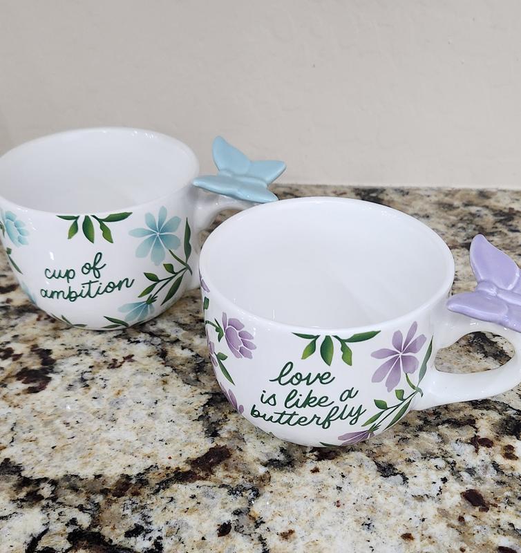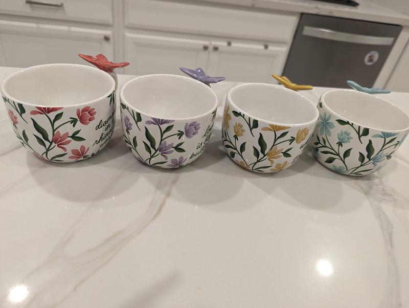 Floral Butterfly Cappuccino Mugs, Set of 4