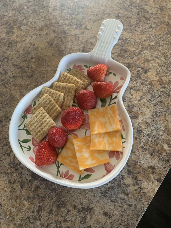 This tray arrived very securely wrapped in bubble wrap to ensure it couldn’t break during transit. It’s a cute little platter. I feel like it’s perfect for a smaller cheese tray, specifically one that might have a jammy topping that you want to keep from running over the edges. We entertain a fair amount so this will come in handy soon. I’m especially happy to see this is dishwasher safe (note: it isn’t microwave safe. This is fine for me, but important to know as the consumer!).